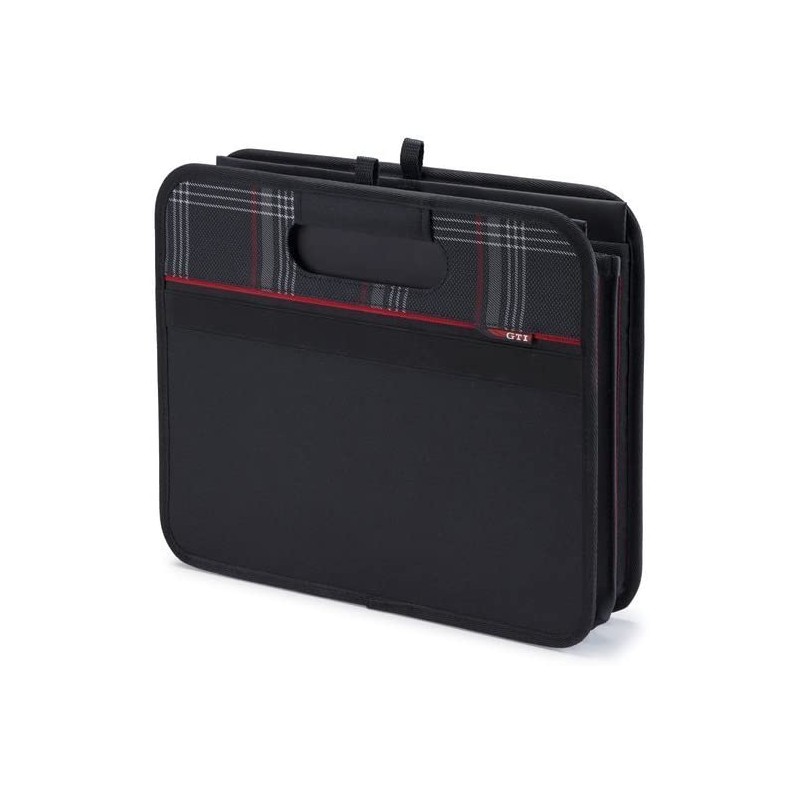 La boîte pliante GTI avec tissu d'origine GTI à carreaux « Clark » et ornée d'un logo GTI.