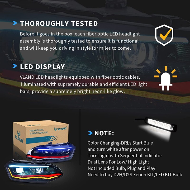Phares, Conçu pour remplacer exactement vos phares d'usine, aucune modification du véhicule n'est requise.