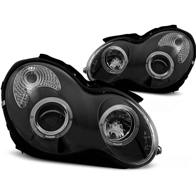 Découvrez les phares Angel Eyes noirs spécialement conçus pour votre Mercedes W203 C-KLASA, modèles de juillet 2000 à mars 2004. Ces phares projecteurs, dotés de doubles cercles halo, apportent une touche de modernité et d'élégance à votre véhicule tout en garantissant une visibilité optimale sur la route.