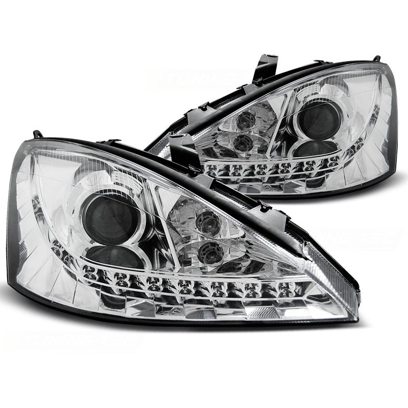 Découvrez les feux de jour chromés pour votre Ford Focus, conçus pour allier esthétique moderne et sécurité optimale. Ces phares à projecteur, équipés de lumières de stationnement LED, sont le choix idéal pour les conducteurs exigeants qui souhaitent améliorer l'apparence et la fonctionnalité de leur véhicule.