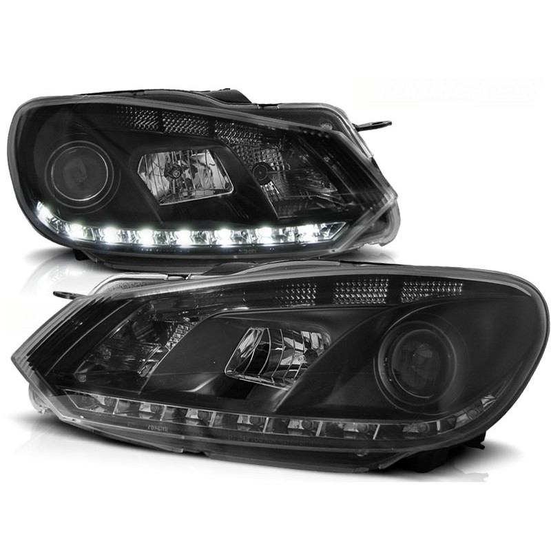 Découvrez les phares noirs DRL séquentiels spécialement conçus pour la VW Golf 6 (modèles de 10.08 à 12). Ces phares à projecteur, dotés de Daytime Running Lights (DRL), apportent une touche de modernité et de sophistication à votre véhicule tout en améliorant votre sécurité sur la route.