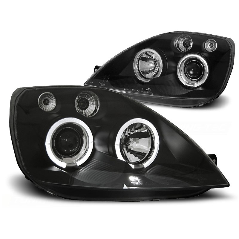 Découvrez les phares avant FORD FIESTA MK6 05.02-08.05 ANGEL EYES NOIR, une solution d'éclairage automobile qui allie design moderne et performance exceptionnelle. Ces phares à projecteur avec double cerclage halo sont conçus pour transformer l'apparence de votre véhicule tout en améliorant votre visibilité sur la route.