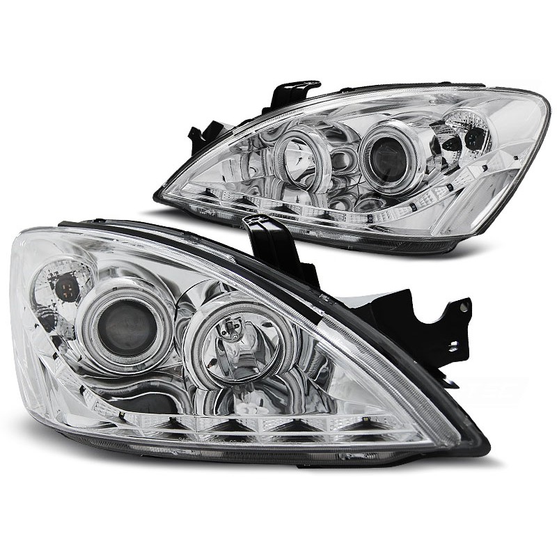 Découvrez les feux de jour chromés pour votre Mitsubishi Lancer 7 (modèles 2004 à 2007), une solution d'éclairage avant innovante qui allie design moderne et performance exceptionnelle. Ces projecteurs avant sont équipés de lumières de stationnement LED et de cercles halo doubles, offrant une visibilité accrue et un look distinctif à votre véhicule.