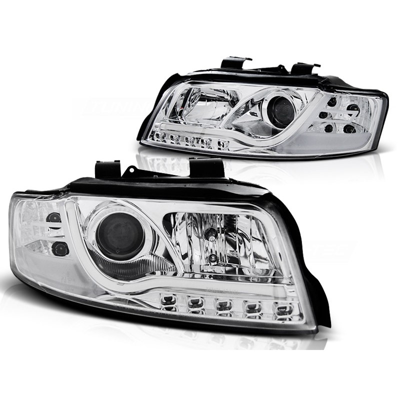 Découvrez les phares TUBE LIGHT DRL chrome spécialement conçus pour votre AUDI A4, modèles de 10.00 à 10.04. Ces phares de haute qualité allient design moderne et technologie avancée pour offrir une visibilité optimale et un style inégalé à votre véhicule. Que vous rouliez de jour ou de nuit, ces phares vous garantissent une expérience de conduite sécurisée et élégante.