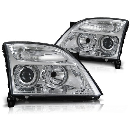 Découvrez les projecteurs avant OPEL VECTRA C 04.02-08.05 ANGEL EYES CHROME, un choix idéal pour les passionnés de voitures cherchant à améliorer l'esthétique et la fonctionnalité de leur véhicule. Ces phares avant, dotés de doubles cercles halo, apportent une touche moderne et élégante à votre Opel Vectra, tout en garantissant une visibilité optimale sur la route.