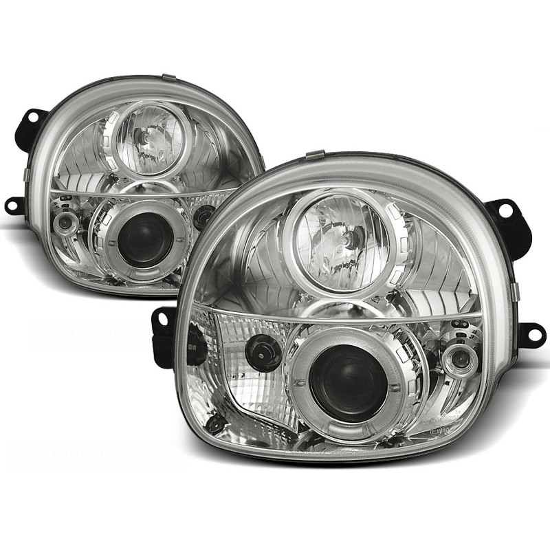 Découvrez les projecteurs avant RENAULT TWINGO 03.93-09.98 ANGEL EYES CHROME, un choix idéal pour les propriétaires de Twingo cherchant à améliorer l'esthétique et la fonctionnalité de leur véhicule. Ces phares avant, dotés d'un design moderne et élégant, sont conçus pour offrir une visibilité optimale tout en ajoutant une touche de style unique à votre voiture.