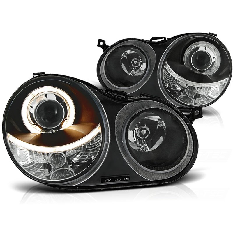 Découvrez les phares Angel Eyes noirs spécialement conçus pour la VW Polo 9N de 2001 à 2005. Ces projecteurs avant, dotés de doubles cercles halo, apportent une touche d'élégance et de modernité à votre véhicule tout en garantissant une visibilité optimale. 100% neufs et vendus par paire, ces phares sont homologués avec le marquage E, assurant leur conformité pour un usage légal sur route.