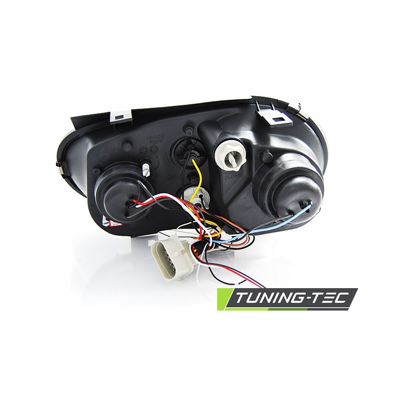 Découvrez les phares Angel Eyes noirs spécialement conçus pour la VW Golf 4, modèles de septembre 1997 à septembre 2003. Ces phares projecteurs, dotés de doubles cercles lumineux, apportent une touche moderne et élégante à votre véhicule tout en garantissant une visibilité optimale sur la route.
