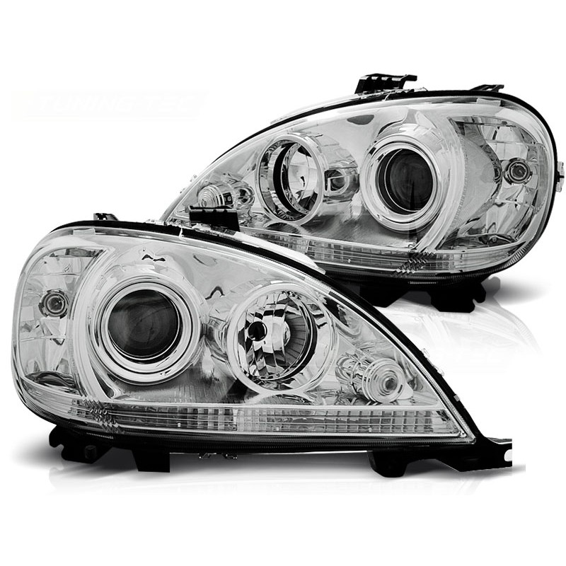 Découvrez nos phares chromés spécialement conçus pour la MERCEDES W163 ML M-KLASA, modèles de septembre 2001 à 2005. Ces projecteurs de phares, vendus par paire, allient performance et esthétique pour transformer votre expérience de conduite. Grâce à leur homologation E-Marquage, ces phares sont parfaitement légaux pour un usage sur route, vous garantissant sécurité et conformité.