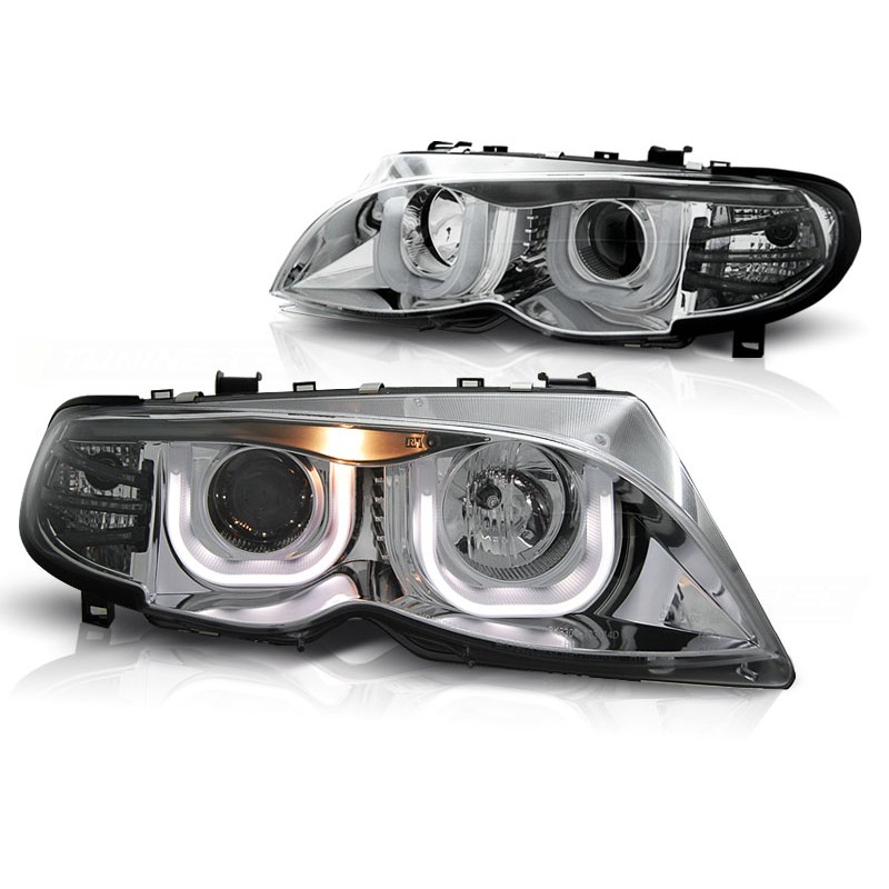 Découvrez les phares Angel Eyes 3D Chrome spécialement conçus pour les modèles BMW E46 produits entre septembre 2001 et mars 2005. Ces phares de haute qualité, dotés de projecteurs avec double cerclage halo, apportent une touche de modernité et d'élégance à votre véhicule tout en garantissant une visibilité optimale sur la route.