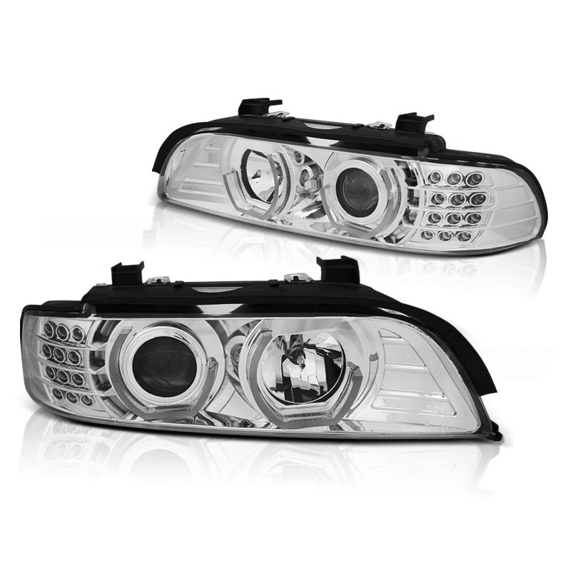 Découvrez les phares ANGEL EYES 3D CHROME spécialement conçus pour les modèles BMW E39 de septembre 1995 à juin 2003. Ces phares projecteurs, dotés de jantes halo 3D doubles, apportent une touche de modernité et d'élégance à votre véhicule tout en garantissant une performance d'éclairage exceptionnelle.