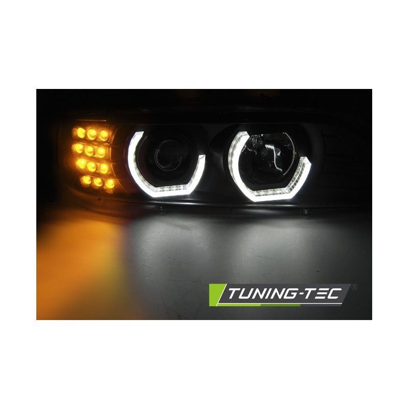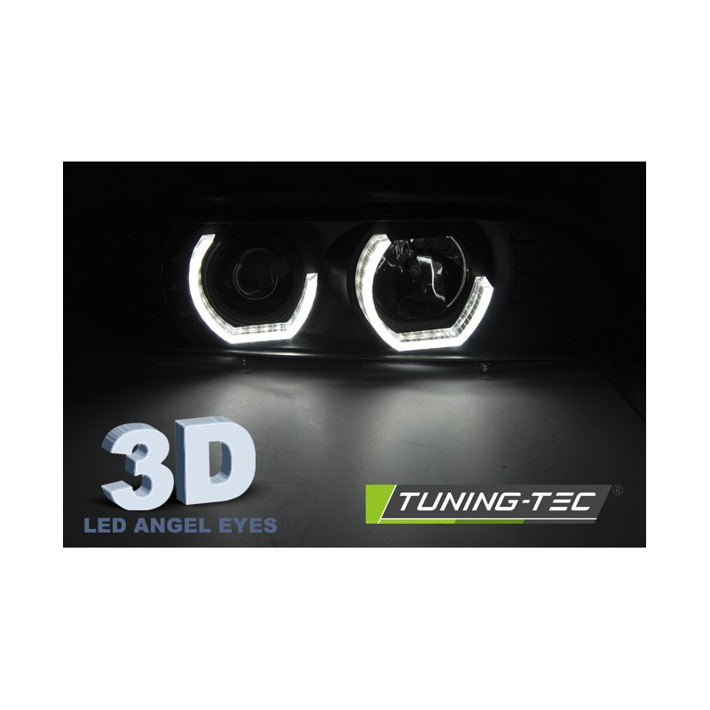 Découvrez les phares Angel Eyes 3D noirs spécialement conçus pour les modèles BMW E39 de septembre 1995 à juin 2003. Ces projecteurs avant, dotés de jantes halo 3D doubles, apportent une touche de modernité et d'élégance à votre véhicule tout en garantissant une performance lumineuse exceptionnelle.