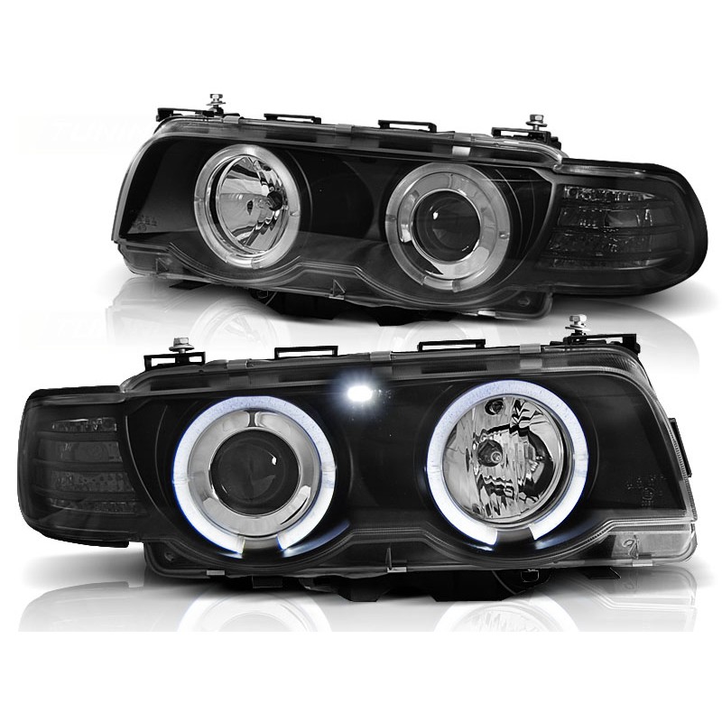 Découvrez les phares Angel Eyes noirs spécialement conçus pour les modèles BMW E38 de septembre 1998 à juillet 2001. Ces phares à projecteur, dotés de doubles cercles halo, apportent une touche de modernité et d'élégance à votre véhicule tout en garantissant une visibilité optimale sur la route.