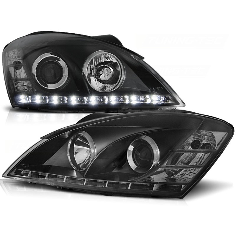 Découvrez les feux de jour noirs pour KIA CEED, conçus pour les modèles de 2006 à 2009. Ces phares à projecteur, équipés de lumières de stationnement LED, offrent une combinaison parfaite de design moderne et de performance. 100% neufs et vendus par paire, ces feux sont homologués avec le marquage "E" de l'Union européenne, garantissant un usage légal sur route.