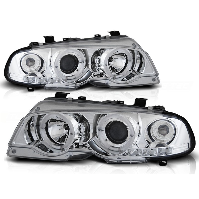 Découvrez les Phares Angel Eyes Chrome spécialement conçus pour les modèles BMW E46 Coupé et Cabrio de 1999 à 2003. Ces projecteurs avant, dotés de doubles anneaux halo, apportent une touche de modernité et d'élégance à votre véhicule tout en garantissant une visibilité optimale sur la route.