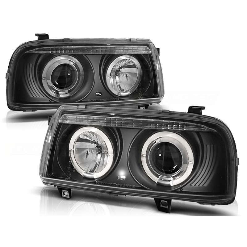 Transformez l'apparence de votre Volkswagen Vento tout en améliorant votre visibilité nocturne grâce aux phares ANGEL EYES noirs. Conçus spécifiquement pour les modèles de 1992 à 1998, ces phares projecteurs offrent une combinaison parfaite de design moderne et de performance exceptionnelle.