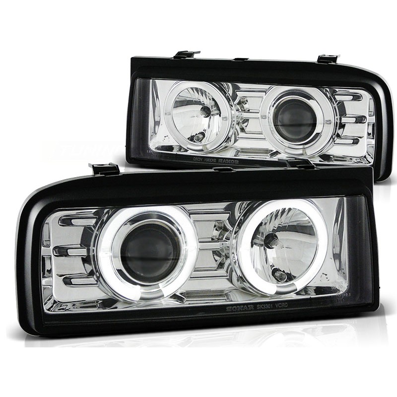 Découvrez les Phares Angel Eyes Chrome spécialement conçus pour votre VW Corrado 88-95. Ces phares projecteurs, dotés de doubles cercles halo, apportent non seulement une touche esthétique moderne à votre véhicule, mais garantissent également une visibilité optimale sur la route. 100% neufs et vendus par paire, ces phares sont homologués avec le marquage E, vous assurant un usage légal sur route.