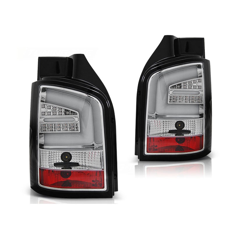 Découvrez les feux arrière LED BAR chromés spécialement conçus pour le Volkswagen T5, modèles de 2004 à 2009. Ces feux arrière, vendus par paire, allient esthétique moderne et technologie avancée pour offrir une visibilité optimale et un style inégalé à votre véhicule.