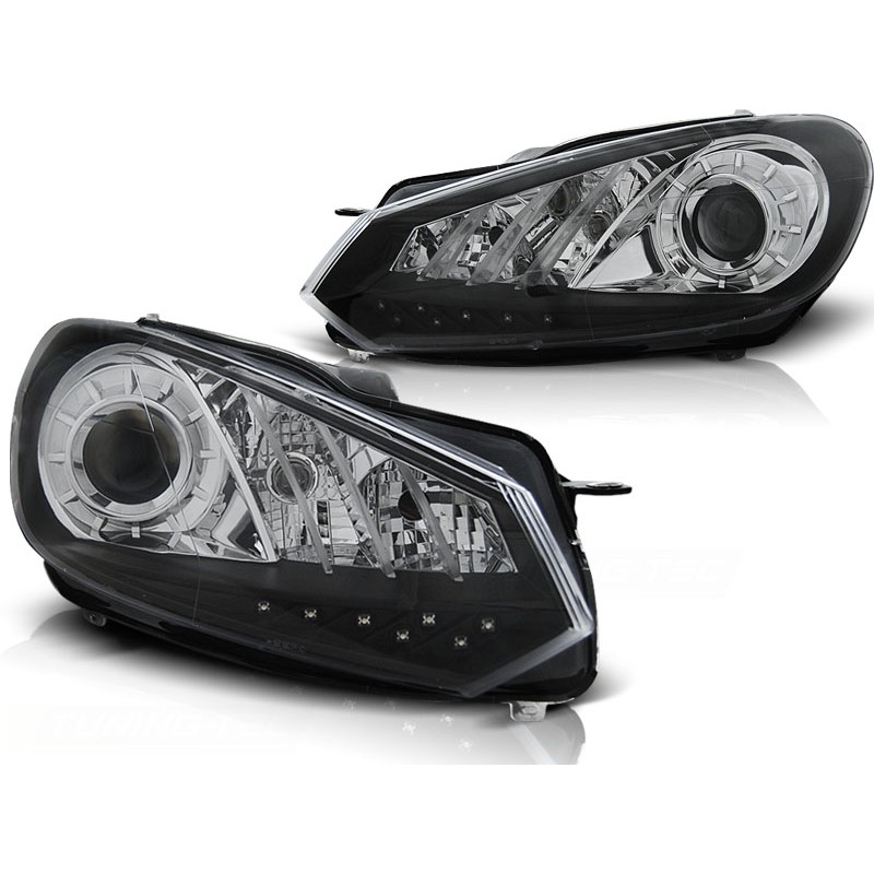 Découvrez les phares TRUE DRL noir spécialement conçus pour la VW Golf 6 (modèles de 10.08 à 12). Ces phares projecteurs, dotés de la technologie Daytime Running Lights (DRL), offrent une combinaison parfaite de style moderne et de performance exceptionnelle. Idéals pour les passionnés de voitures cherchant à améliorer l'apparence et la sécurité de leur véhicule, ces phares sont un choix incontournable.