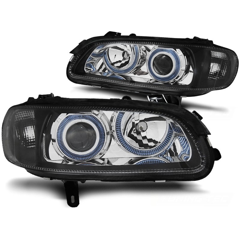 Découvrez les projecteurs avant OPEL OMEGA B 04.94-08.99 ANGEL EYES NOIR, un choix parfait pour les passionnés d'automobile cherchant à améliorer l'esthétique et la fonctionnalité de leur véhicule. Ces phares avant, dotés de doubles cercles halo, apportent une touche moderne et élégante à votre Opel Omega, tout en garantissant une visibilité optimale sur la route.