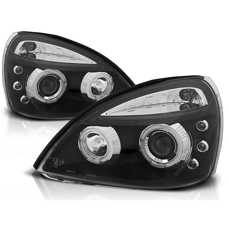 Découvrez les phares avant RENAULT CLIO II 06.01-09.05 ANGEL EYES NOIR, une solution d'éclairage automobile qui allie design moderne et performance exceptionnelle. Conçus pour s'adapter parfaitement à votre Renault Clio II, ces phares projeteurs avec double cerclage halo offrent une visibilité accrue et un style unique à votre véhicule.