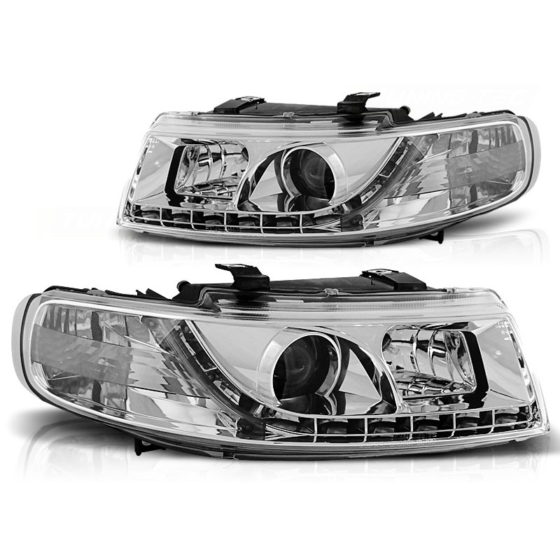Découvrez les phares diurnes chromés spécialement conçus pour les modèles SEAT LEON et TOLEDO de 1999 à 2004. Ces phares à projecteur, équipés de lumières de stationnement LED, offrent une combinaison parfaite de design moderne et de performance exceptionnelle. Vendu par paire, chaque ensemble comprend un phare gauche et un phare droit, garantissant une installation harmonieuse et esthétique sur votre véhicule.