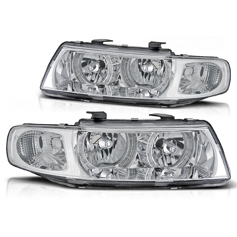 Découvrez les phares ANGEL EYES chromés spécialement conçus pour les modèles SEAT LEON et TOLEDO de 1999 à 2004. Ces phares avant innovants, dotés de doubles cercles halo, apportent une touche de modernité et d'élégance à votre véhicule tout en garantissant une visibilité optimale sur la route.