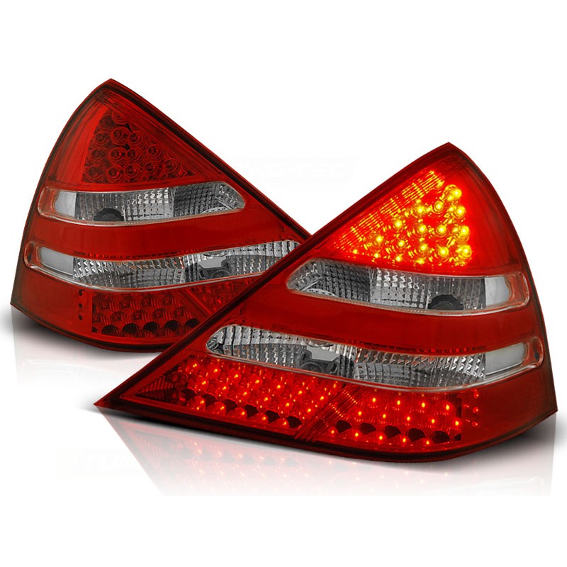 Découvrez les feux arrière LED rouge blanc spécialement conçus pour la MERCEDES R170 SLK de 1996 à 2004. Ces feux arrière allient technologie avancée et design raffiné pour offrir une visibilité optimale et un style distinctif à votre véhicule. Parfaits pour les passionnés de voitures qui recherchent à la fois performance et esthétique, ces feux arrière sont un choix incontournable pour moderniser votre MERCEDES.