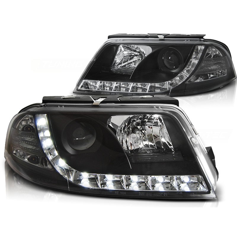 Découvrez les phares avant TRUE DRL noirs, spécialement conçus pour la Volkswagen Passat 3BG de septembre 2000 à mars 2005. Ces projecteurs avant, dotés de Daytime Running Lights (DRL) à LED, offrent une combinaison parfaite de style moderne et de fonctionnalité avancée. Vendu par paire, chaque ensemble comprend un phare gauche et un phare droit, garantissant une installation harmonieuse et symétrique sur votre véhicule.