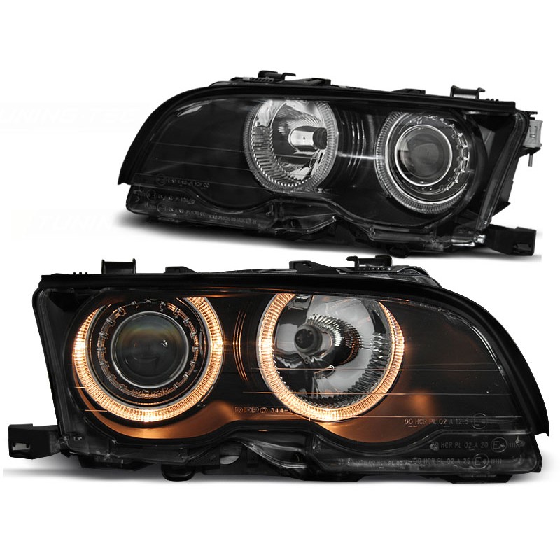 Phares Angel Eyes Noirs Compatibles BMW E46 09.01-03.03 Coupé Cabriolet