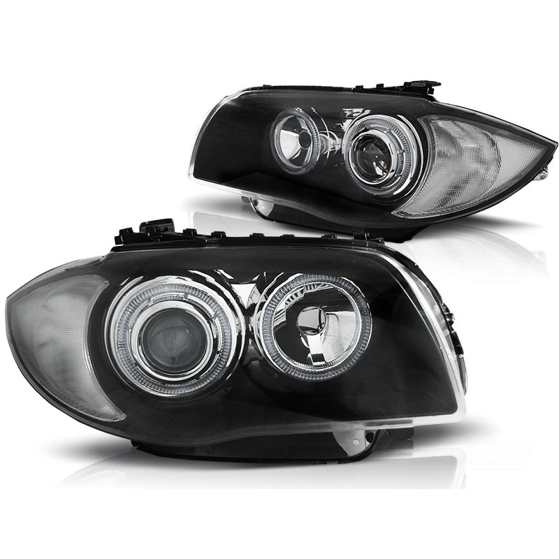 Transformez l'apparence de votre BMW Série 1 avec nos phares Angel Eyes noirs, spécialement conçus pour les modèles E87, E81, E82 et E88 de 2004 à 2011. Ces phares projecteurs, dotés de doubles cercles halo, apportent une touche moderne et élégante à votre véhicule tout en garantissant une visibilité optimale sur la route.