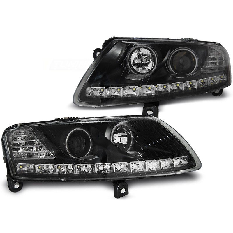 Découvrez les phares ANGEL EYES LED noirs spécialement conçus pour votre AUDI A6 C6 (modèles de 2004 à 2008). Ces phares à projecteur, dotés de doubles anneaux halo et de lumières de stationnement LED, apportent une touche de modernité et de sophistication à votre véhicule tout en garantissant une visibilité optimale.