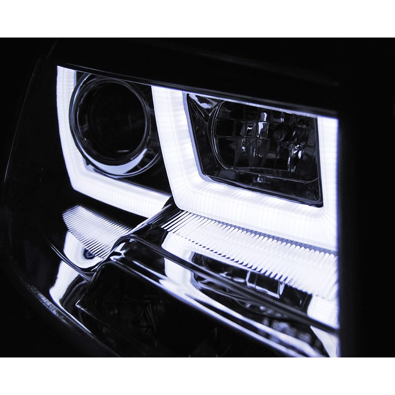 Les Phares U-LED Light Chrome pour VW T5 2010-2015 sont la solution idéale pour les propriétaires de Volkswagen T5 cherchant à améliorer l'éclairage de leur véhicule tout en ajoutant une touche de modernité et d'élégance. Conçus avec précision, ces phares à projecteur intègrent des Daytime Running Lights (DRL) pour une visibilité accrue et une sécurité renforcée sur la route.