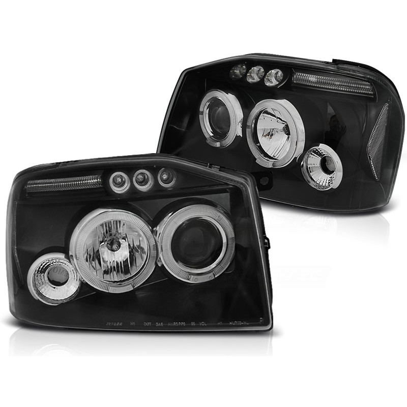 Découvrez les projecteurs avant NISSAN FRONTIER VERSION US 01-04 NOIR, un choix idéal pour les passionnés d'automobile cherchant à améliorer l'éclairage et le style de leur véhicule. Ces phares avant, dotés de doubles cercles halo, apportent une touche moderne et élégante à votre Nissan Frontier, tout en garantissant une visibilité optimale sur la route.