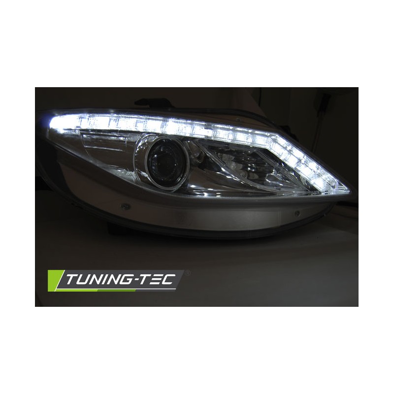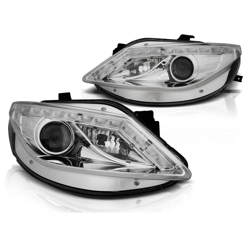 Découvrez les phares diurnes chrome avec indicateur LED, spécialement conçus pour la SEAT Ibiza 6J de 2008 à 2012. Ces phares avant de haute qualité allient design moderne et technologie avancée pour offrir une visibilité optimale et un style unique à votre véhicule.