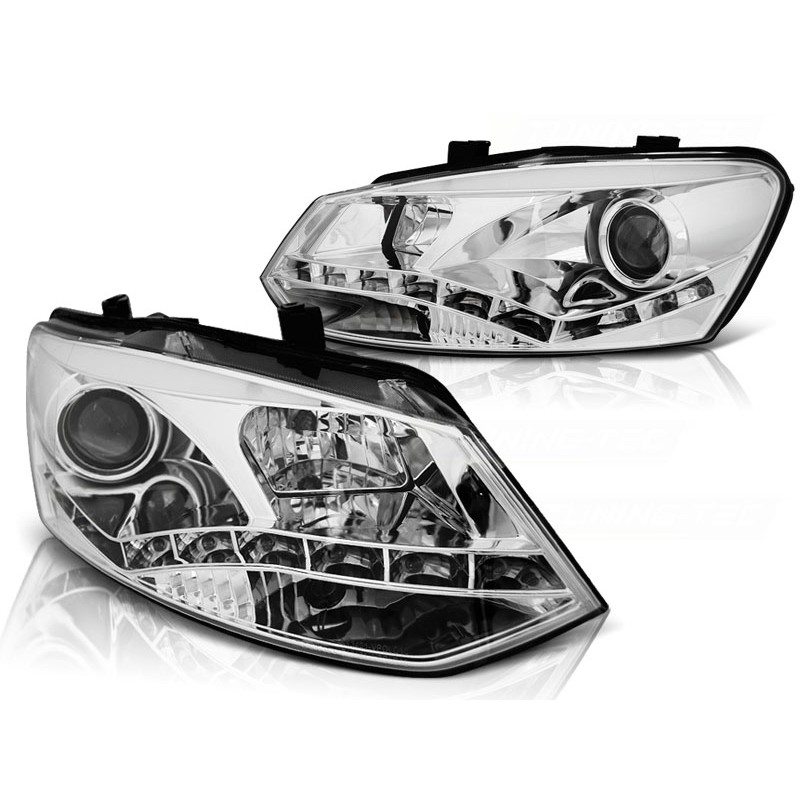 Découvrez les phares avant TRUE DRL chrome, spécialement conçus pour la VW Polo 6R de 2009 à mars 2014. Ces phares à projecteur intègrent des Daytime Running Lights (DRL) à LED, offrant une visibilité accrue et un design moderne à votre véhicule. Attention, ces phares ne conviennent pas à la version d'ampoule H4 d'origine. 100% neufs, ils sont vendus par paire (gauche et droite) et bénéficient d'une homologation E-Marquage et ECE-R87, garantissant leur conformité aux normes européennes.