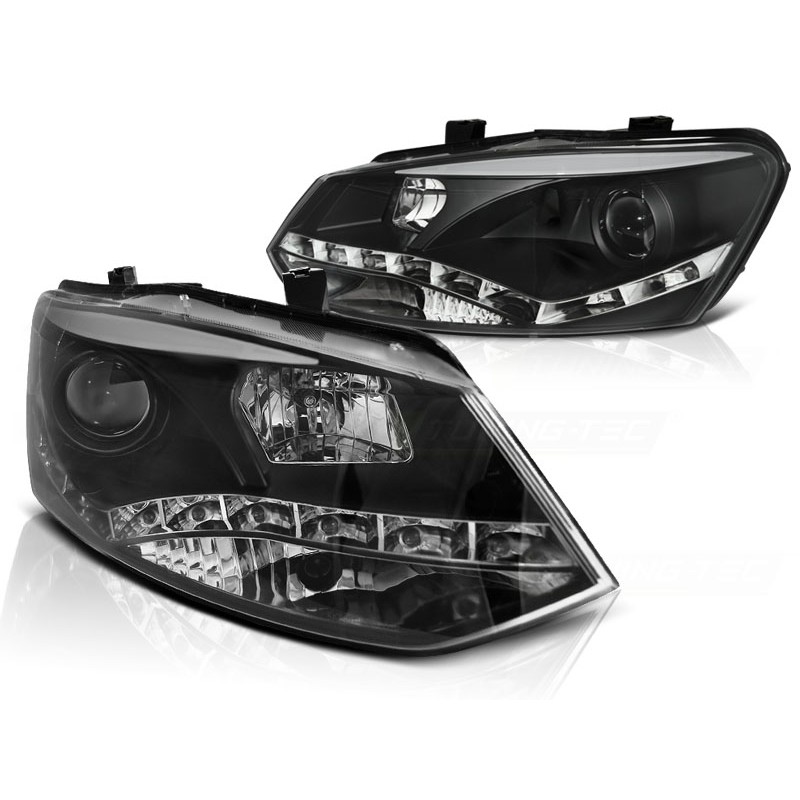 Découvrez les phares noirs TRUE DRL spécialement conçus pour la VW Polo 6R de 2009 à mars 2014. Ces phares à projecteur intègrent des Daytime Running Lights (DRL) pour une visibilité accrue et un style moderne. Parfaits pour les passionnés d'automobile cherchant à allier performance et design, ces phares sont une mise à niveau incontournable pour votre véhicule.