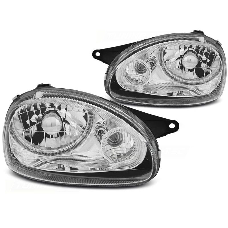 Découvrez les projecteurs avant OPEL CORSA B 02.93-10.00 ANGEL EYES CHROME, une solution d'éclairage automobile innovante et élégante, conçue pour transformer l'apparence de votre véhicule tout en améliorant votre visibilité sur la route. Ces phares avant, dotés de doubles cercles halo, apportent une touche moderne et sophistiquée à votre Opel Corsa B, tout en respectant les normes de sécurité européennes grâce à leur homologation E-Marquage.