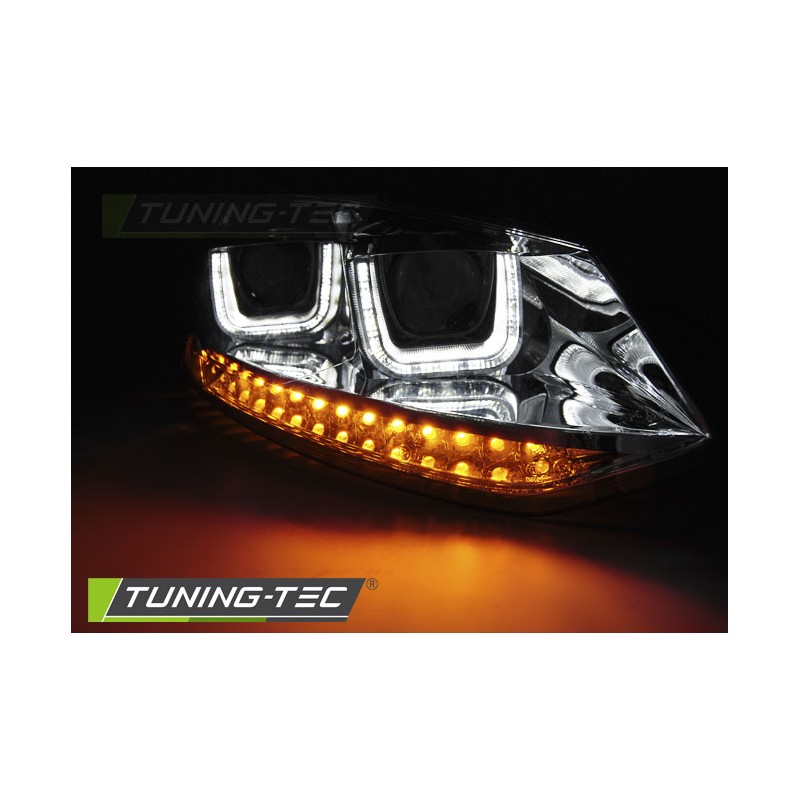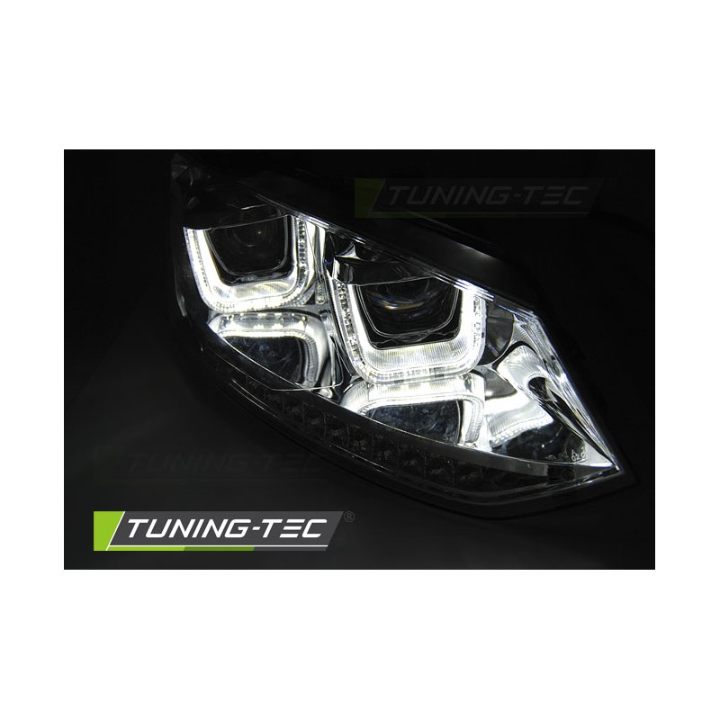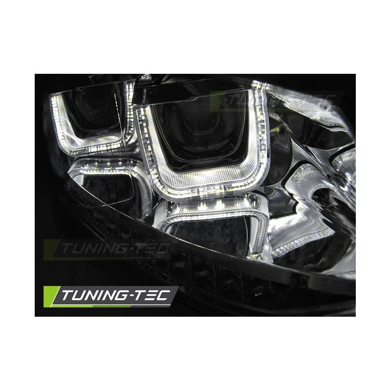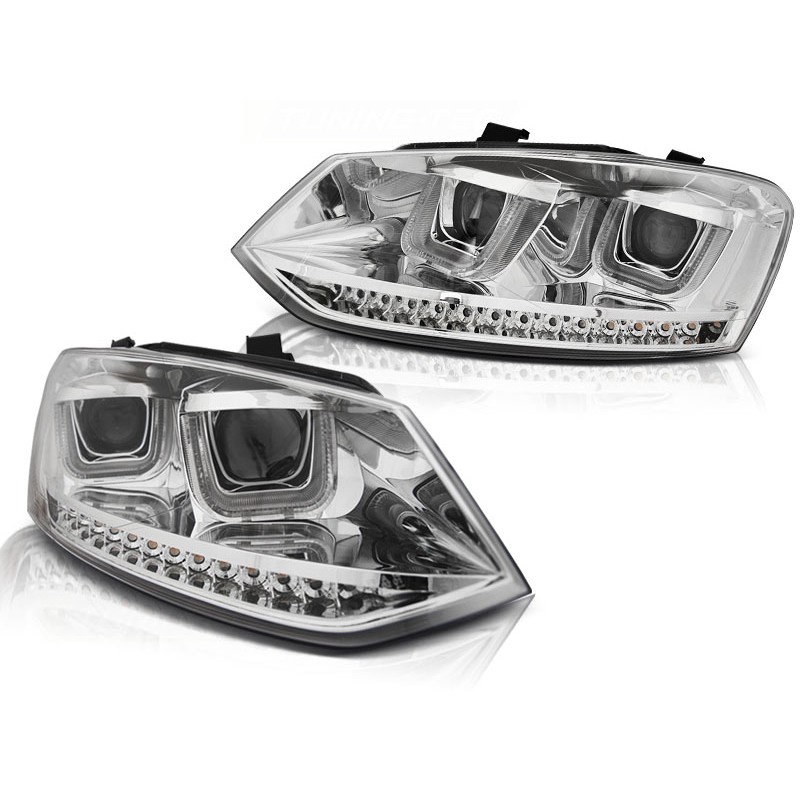 Transformez l'apparence et la performance de votre Volkswagen Polo 6R avec nos phares U-LED chromés séquentiels, spécialement conçus pour les modèles de 2009 à mars 2014. Ces phares avant innovants allient design moderne et technologie avancée pour offrir une visibilité optimale et un style inégalé.