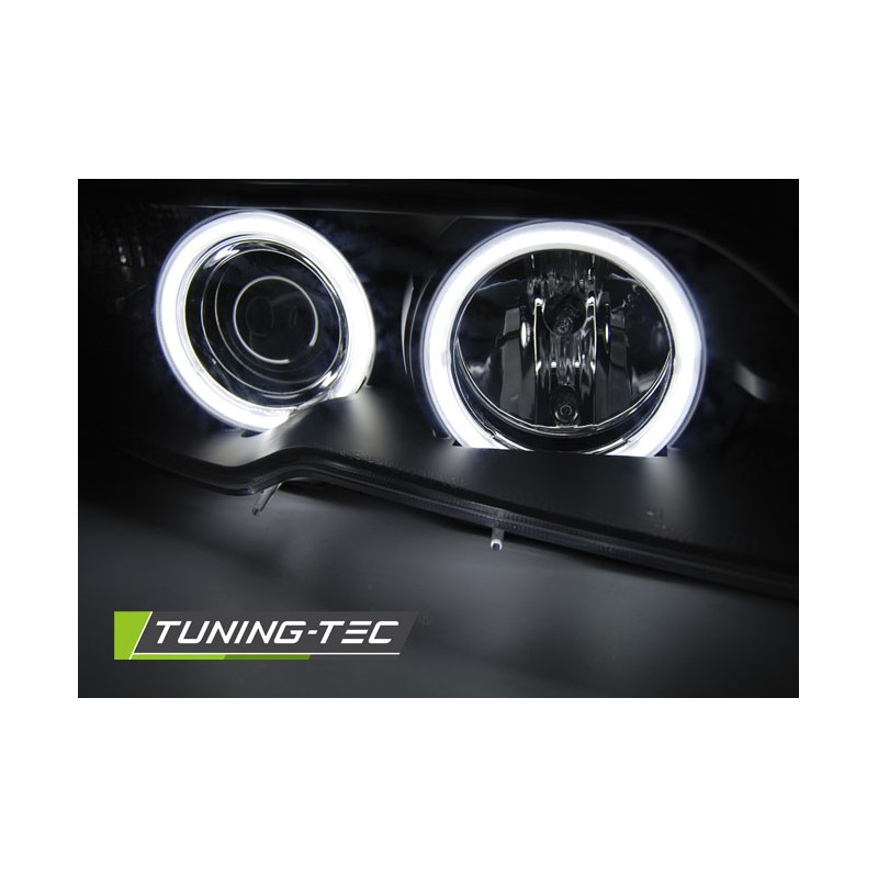 Transformez l'apparence et les performances de votre BMW E46 Coupé ou Cabriolet avec nos phares Angel Eyes CCFL noirs. Conçus pour offrir une esthétique moderne et élégante, ces phares sont l'accessoire parfait pour les passionnés de voitures cherchant à améliorer leur véhicule tout en respectant les normes de sécurité routière.