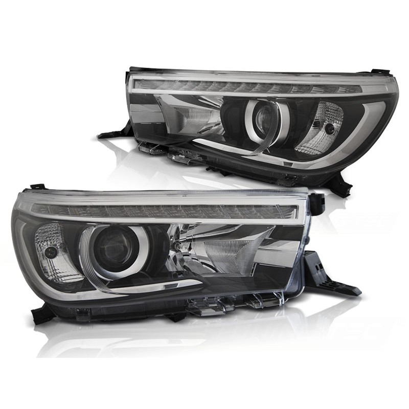 Découvrez le projecteur LED véritable DRL noir pour Toyota Hilux 2016 et plus, un choix incontournable pour les passionnés d'automobile cherchant à allier performance, sécurité et design moderne. Ces phares à projecteur, équipés de Daytime Running Lights (DRL), offrent une visibilité optimale et un style inégalé pour votre véhicule.