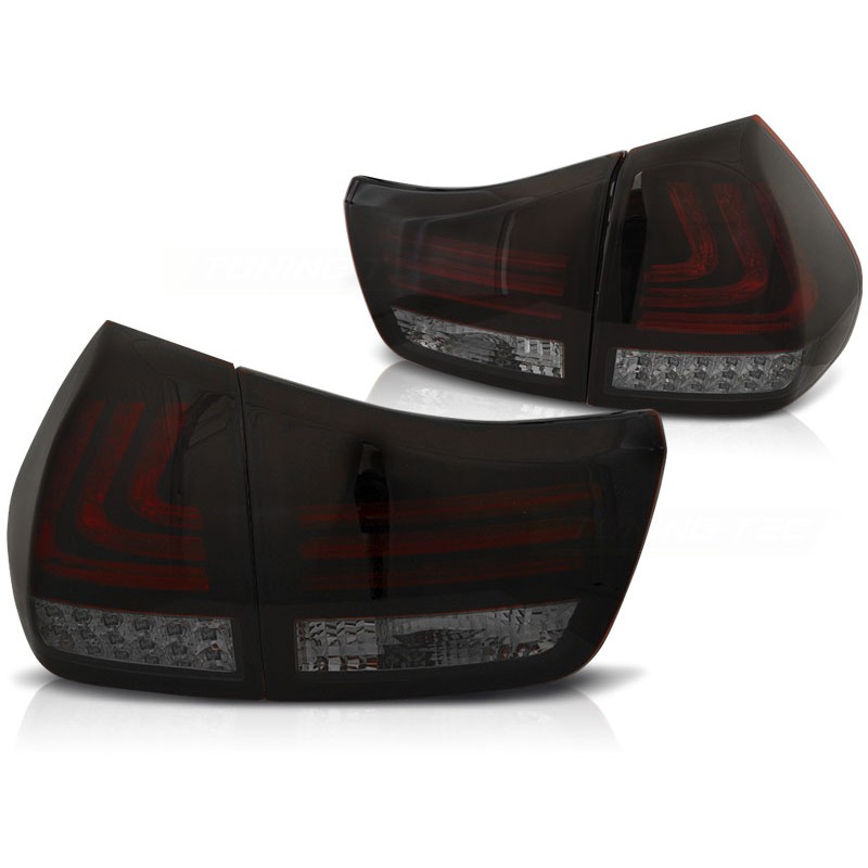Découvrez les feux arrière LED BAR ROUGE FUMÉ NOIR pour votre Lexus RX 330 / 350 de 2003 à 2008, une solution d'éclairage moderne et élégante qui transforme l'apparence de votre véhicule tout en améliorant sa visibilité. Ces feux arrière sont conçus pour les passionnés d'automobile qui recherchent à la fois performance et esthétique.