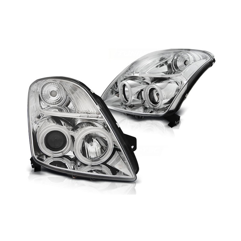 Découvrez les phares à projecteur YEUX D'ANGE CCFL CHROME spécialement conçus pour la Suzuki Swift de mai 2005 à 2010. Ces phares avant innovants, dotés de jantes à double halo CCFL, apportent une touche de modernité et de sophistication à votre véhicule tout en garantissant une visibilité optimale sur la route.