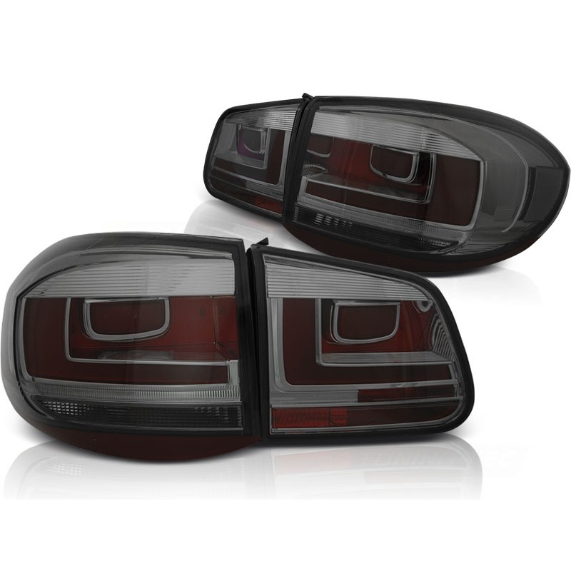 Découvrez les feux arrière LED BAR fumés, spécialement conçus pour les modèles VW TIGUAN de 2007 à juillet 2011. Ces feux arrière allient esthétique moderne et technologie avancée pour offrir une visibilité optimale et un style unique à votre véhicule. 100% tout neufs, ces feux sont vendus par paire (gauche et droite) et sont dotés de l'approbation E-Marquage E9, garantissant leur usage légal sur route.