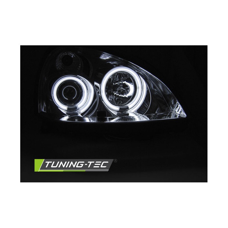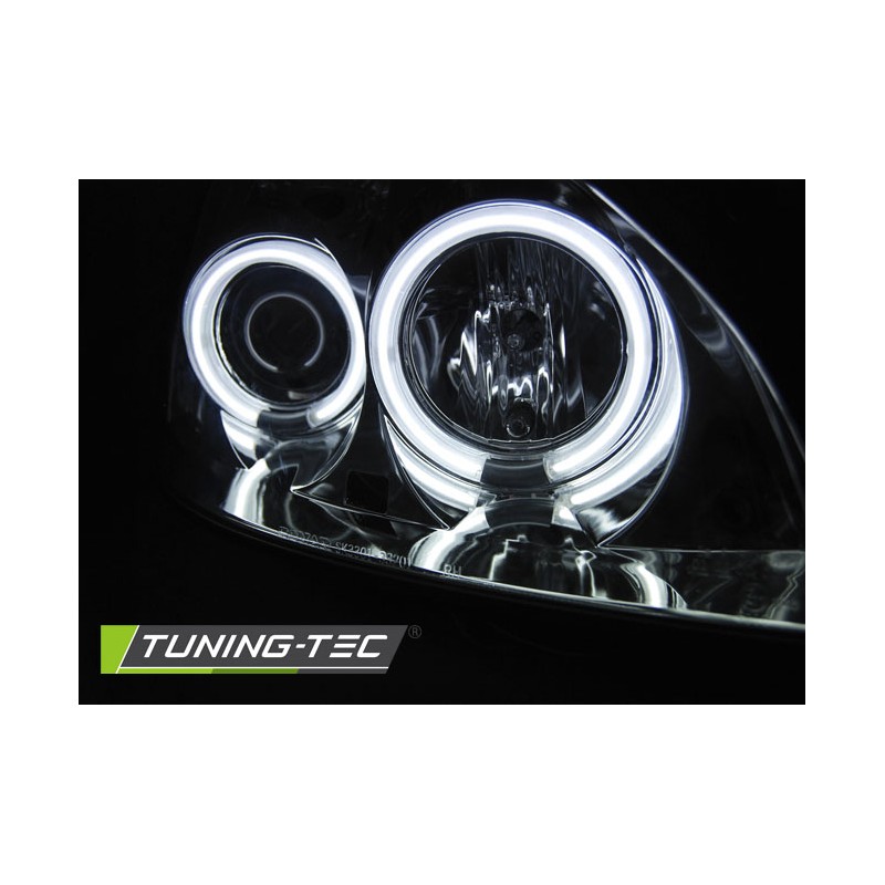 Découvrez les phares avant RENAULT CLIO II 06.01-09.05 ANGEL EYES CCFL CHROME, une solution d'éclairage automobile qui allie design moderne et performance exceptionnelle. Ces phares projecteurs, équipés de jantes halo CCFL doubles, sont conçus pour transformer l'apparence de votre véhicule tout en améliorant votre visibilité sur la route.