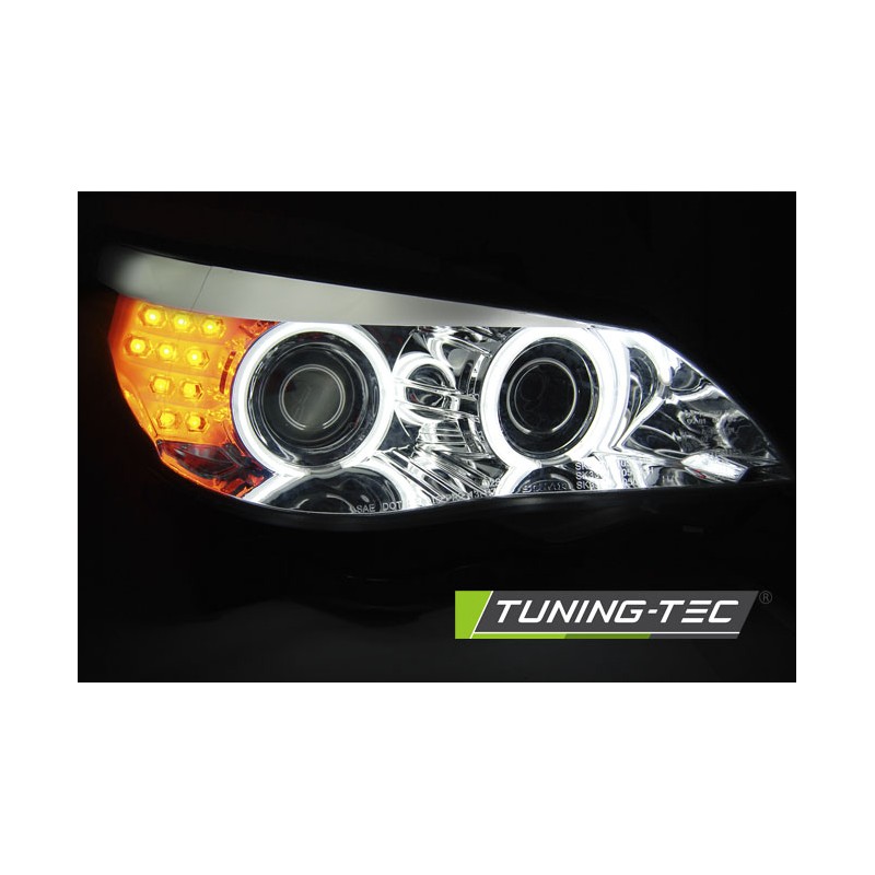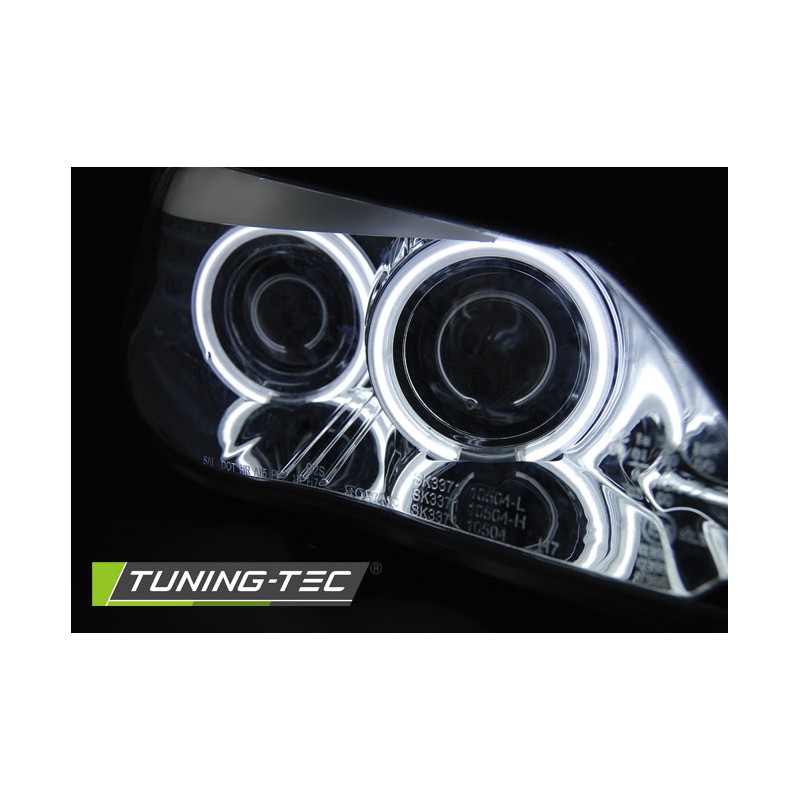 Découvrez les Phares Angel Eyes CCFL Chrome Indicateur LED spécialement conçus pour les modèles BMW E60/E61 de 2003 à 2007. Ces phares avant, dotés de jantes doubles halo CCFL, apportent une touche de modernité et d'élégance à votre véhicule tout en garantissant une visibilité optimale sur la route. 100% neufs et vendus par paire, ces phares sont homologués avec le marquage E6, vous assurant un usage légal sur route.