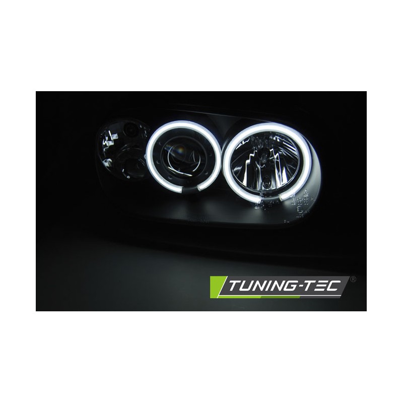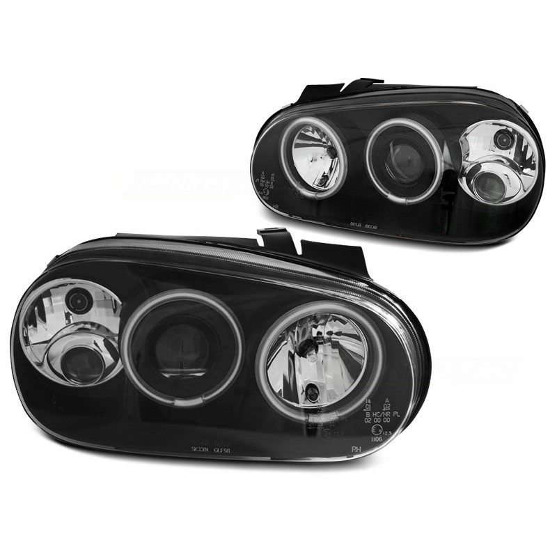 Découvrez les phares ANGEL EYES CCFL noirs spécialement conçus pour la VW GOLF 4, modèles de septembre 1997 à septembre 2003. Ces phares projecteurs, dotés de jantes à double halo CCFL, apportent une touche de modernité et d'élégance à votre véhicule tout en garantissant une visibilité optimale sur la route.