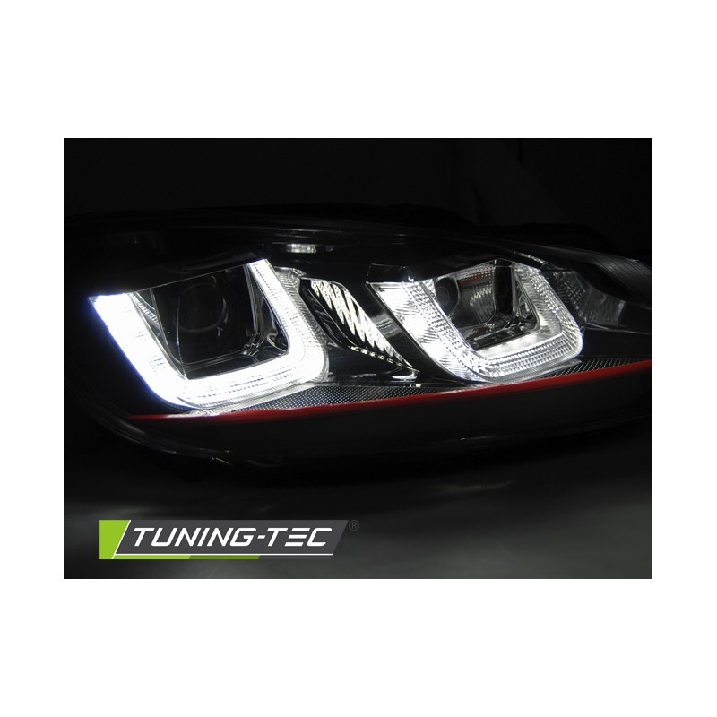 Découvrez les phares U-LED DRL noir ligne rouge spécialement conçus pour la VW Golf 6 (2008-2012). Ces phares à projecteur innovants intègrent des Daytime Running Lights (DRL) pour une visibilité accrue et un design moderne. Parfaits pour les passionnés de voitures cherchant à allier esthétique et performance, ces phares sont un choix incontournable pour transformer l'apparence de votre véhicule tout en améliorant votre sécurité sur la route.