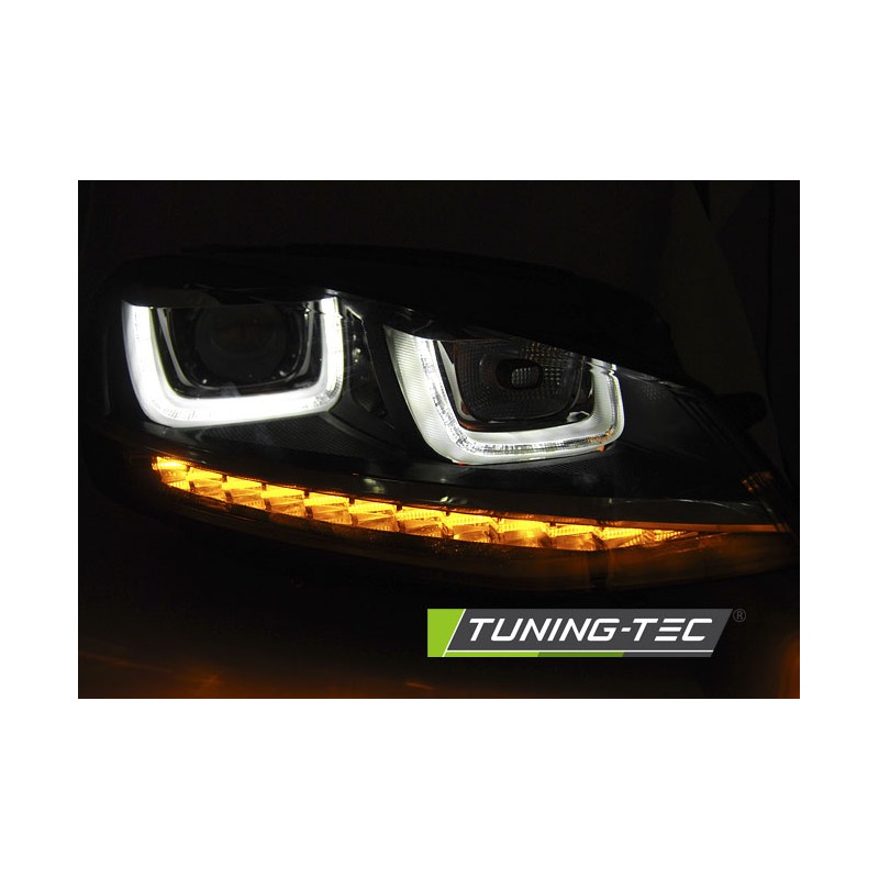 Découvrez les Phares U-LED DRL Noir spécialement conçus pour la VW Golf 7 (modèles de 2011 à 2017). Ces phares à projecteur innovants intègrent des Daytime Running Lights (DRL) et un clignotant dynamique, offrant une visibilité optimale et un design moderne à votre véhicule. Parfaits pour les conducteurs exigeants, ces phares allient performance, sécurité et esthétique.