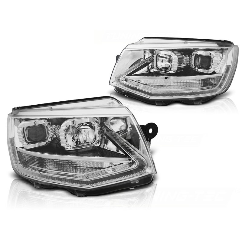 Découvrez les phares avant TRUE DRL chrome spécialement conçus pour les modèles VW T6 de 2015 à 2019. Ces phares de haute qualité allient technologie avancée et design moderne pour offrir une visibilité optimale et un style raffiné à votre véhicule. Grâce à leur intégration parfaite, ces phares avant sont l'accessoire idéal pour améliorer à la fois l'apparence et la sécurité de votre voiture.